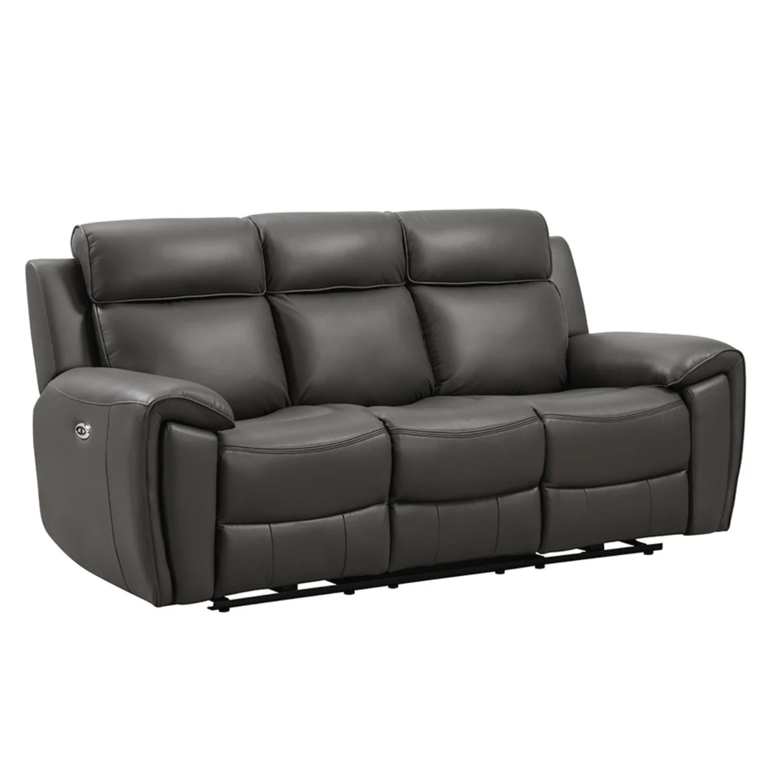 Nevara Genuine Leather Grey Electric Power Recliner 3-Seater