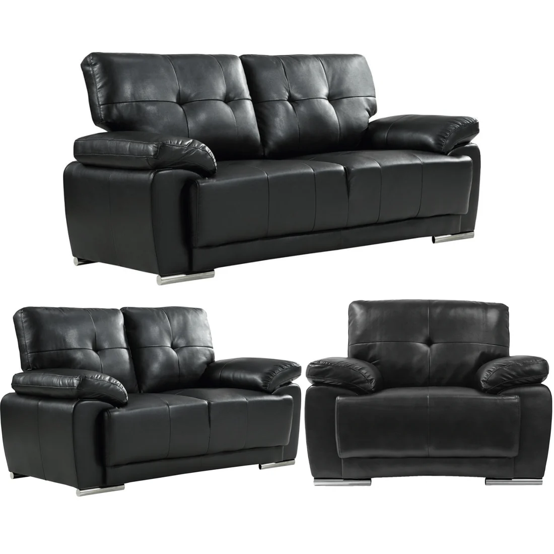 Tristan Black Leather Aire 3+2+1 Seater Sofa Set